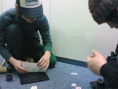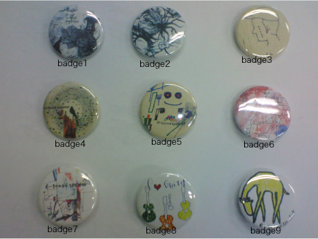 | メンバー手作り缶バッヂ 各100円(商品番号011〜019) 大迫章弘自筆イラスト メンバーがいちから手作りでひとつひとつ創りました。(下記参照) ![]() |